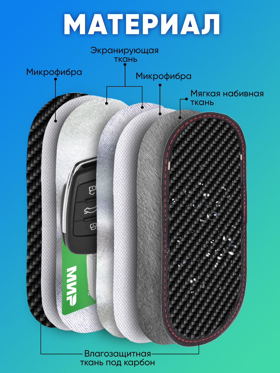 Внутри — клетка Фарадея. Специальный металлизированный слой полностью блокирует радиоволны. Никакой считыватель не пробьётся к вашему ключу, карте или транспондеру «Главная дорога» / T-pass / ЗСД.